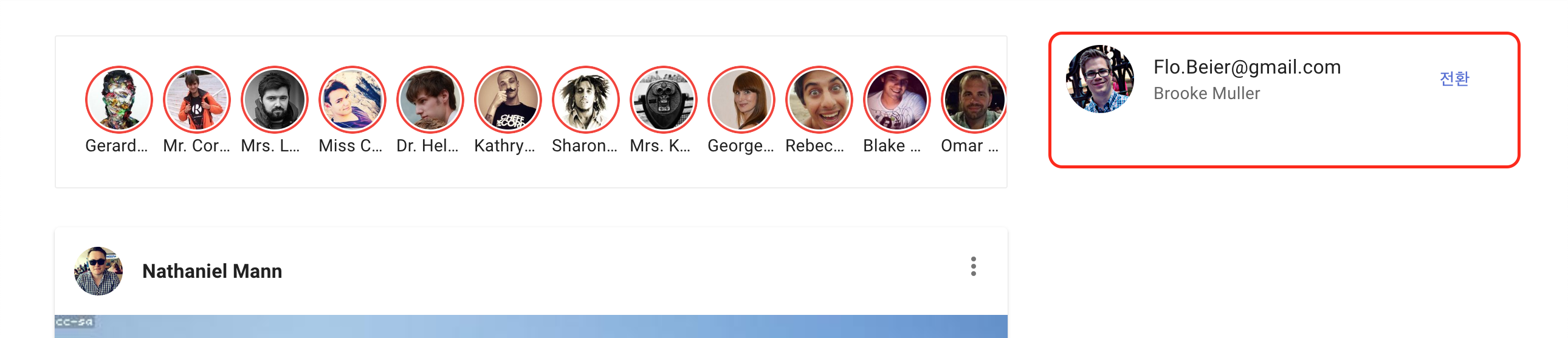 import * as React from 'react'; import List from '@mui/material/List'; import ListItem from '@mui/material/ListItem'; import ListItemText from '@mui/material/ListItemText'; import ListItemAvatar from '@mui/material/ListItemAvatar'; import Avatar from '@mui/material/Avatar'; import Button from '@mui/material/Button'; ...... <List sx={{ marginTop: '2rem' }}> <ListItem disablePadding secondaryAction={<Button>전환</Button>}> <ListItemAvatar> <Avatar alt="Remy Sharp" src={profile?.avatar} sx={{ width: 56, height: 56, marginRight: '1rem' }} /> </ListItemAvatar> <ListItemText primary={profile?.email} secondary={profile?.username} /> </ListItem> </List>